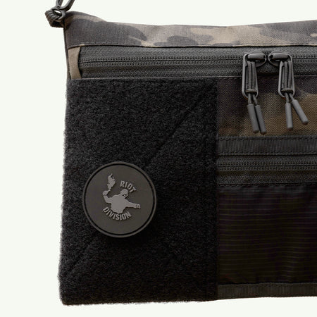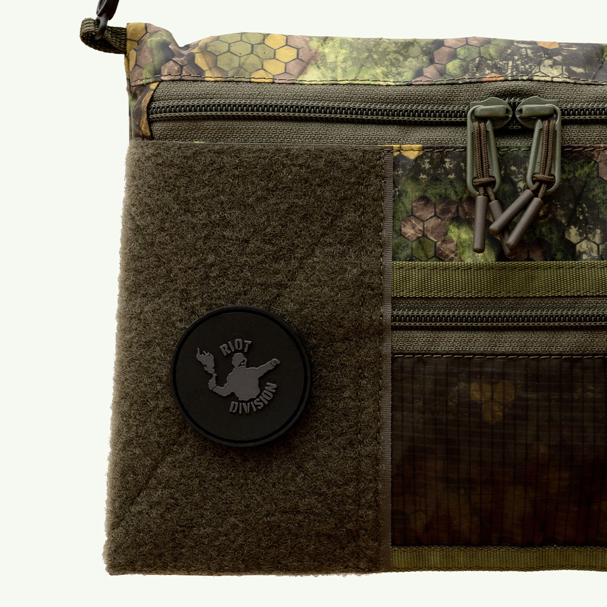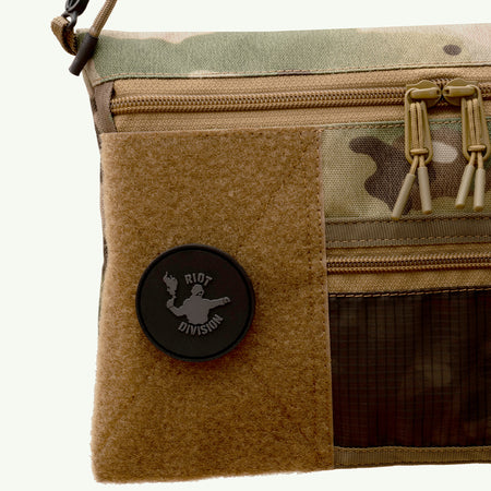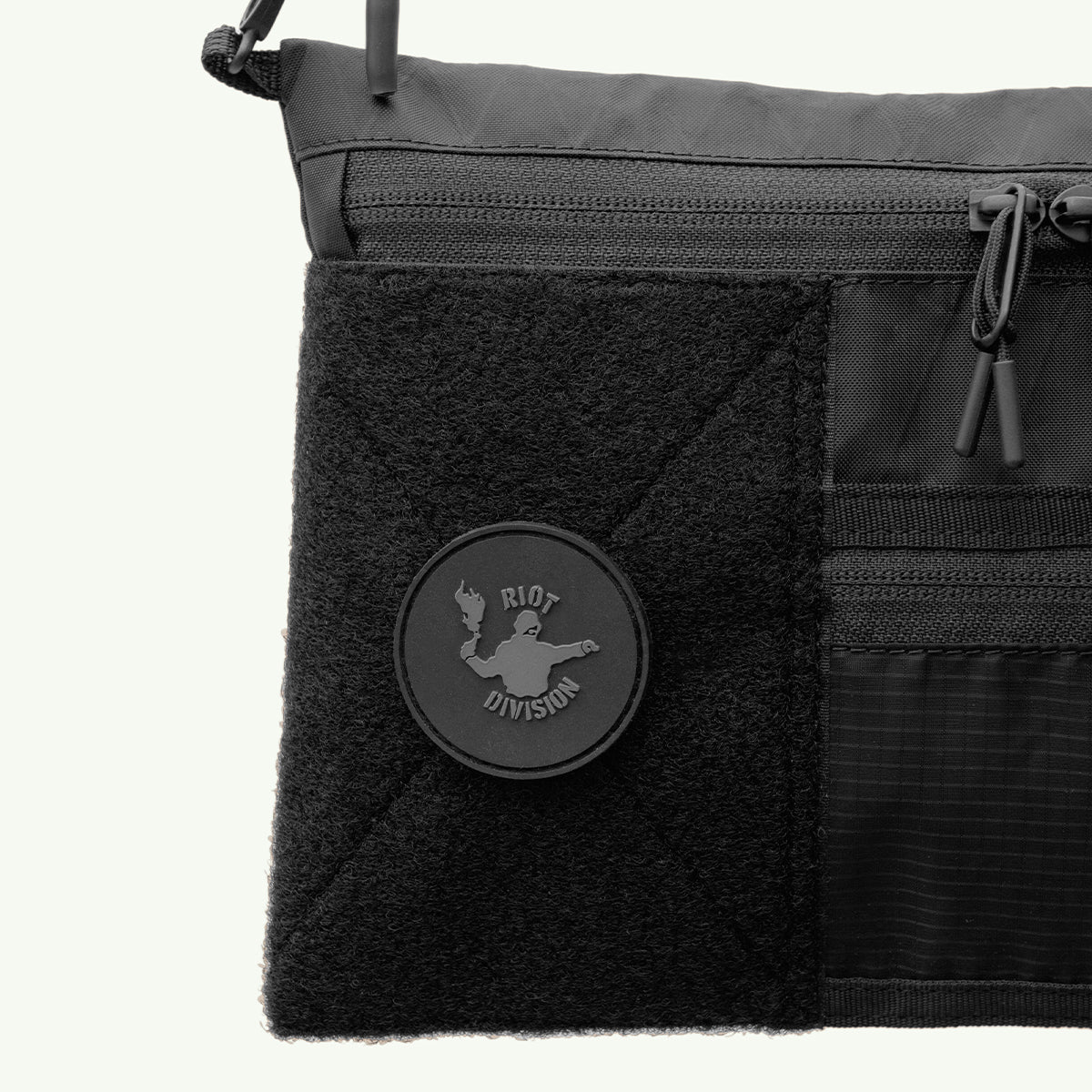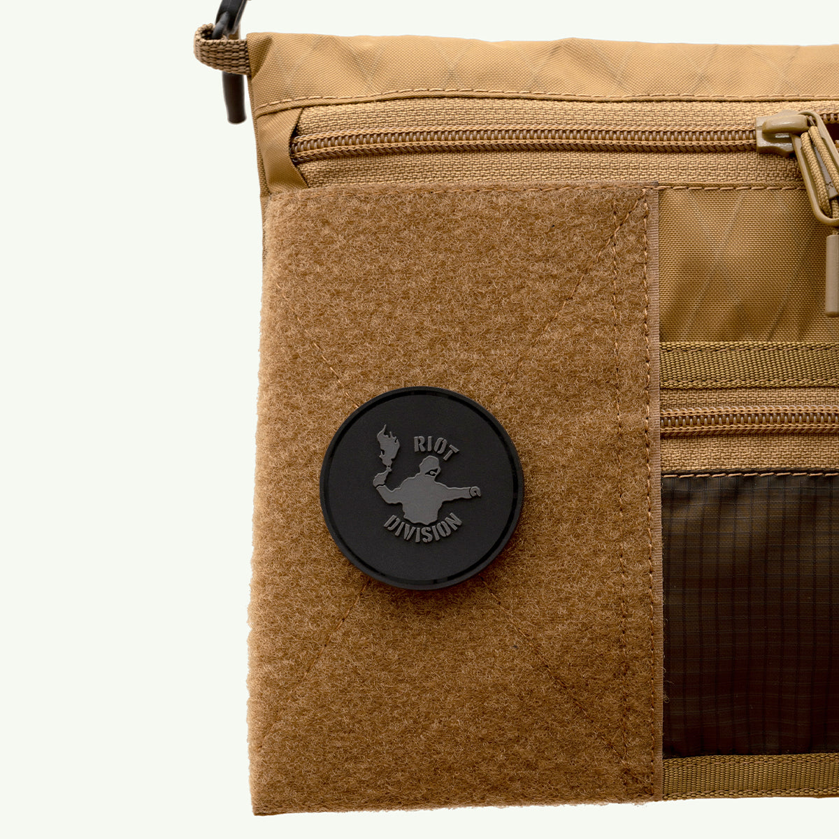 The bag has a main compartment with a sling and carabiner for keys, and a small translucent pocket with mesh, there is also a large velcro section on the front to attach the chevron of your favorite brand or division.