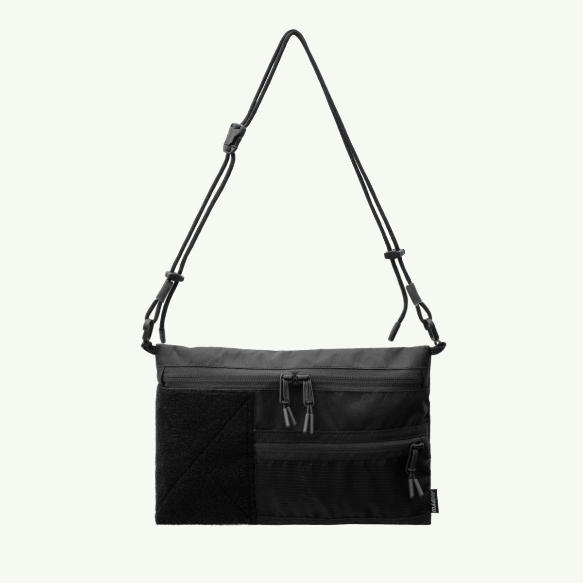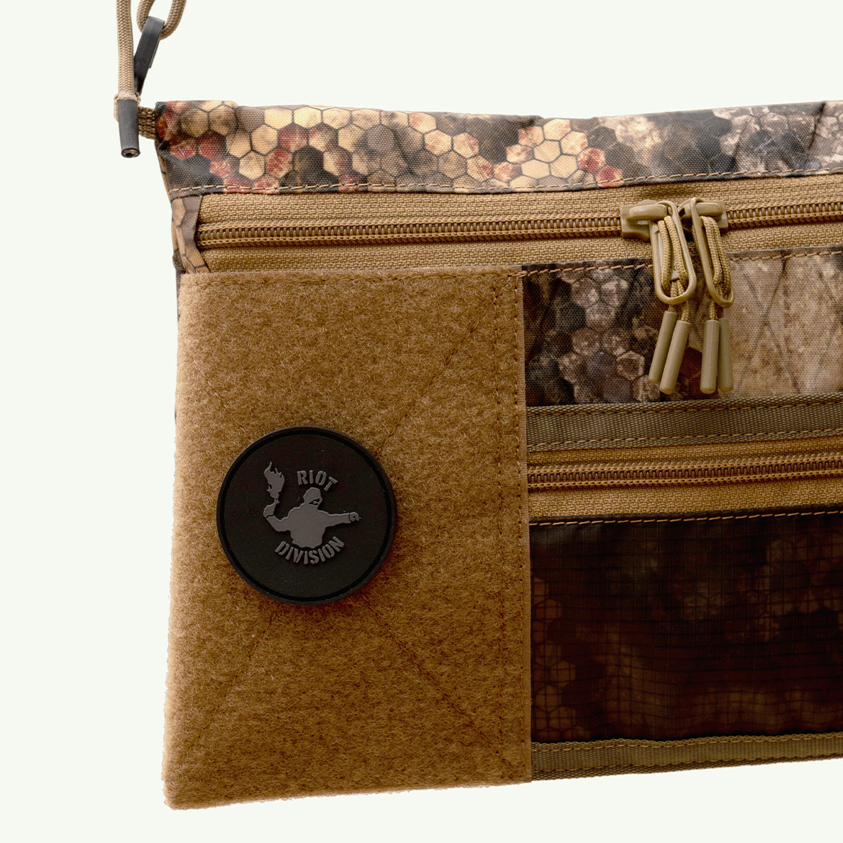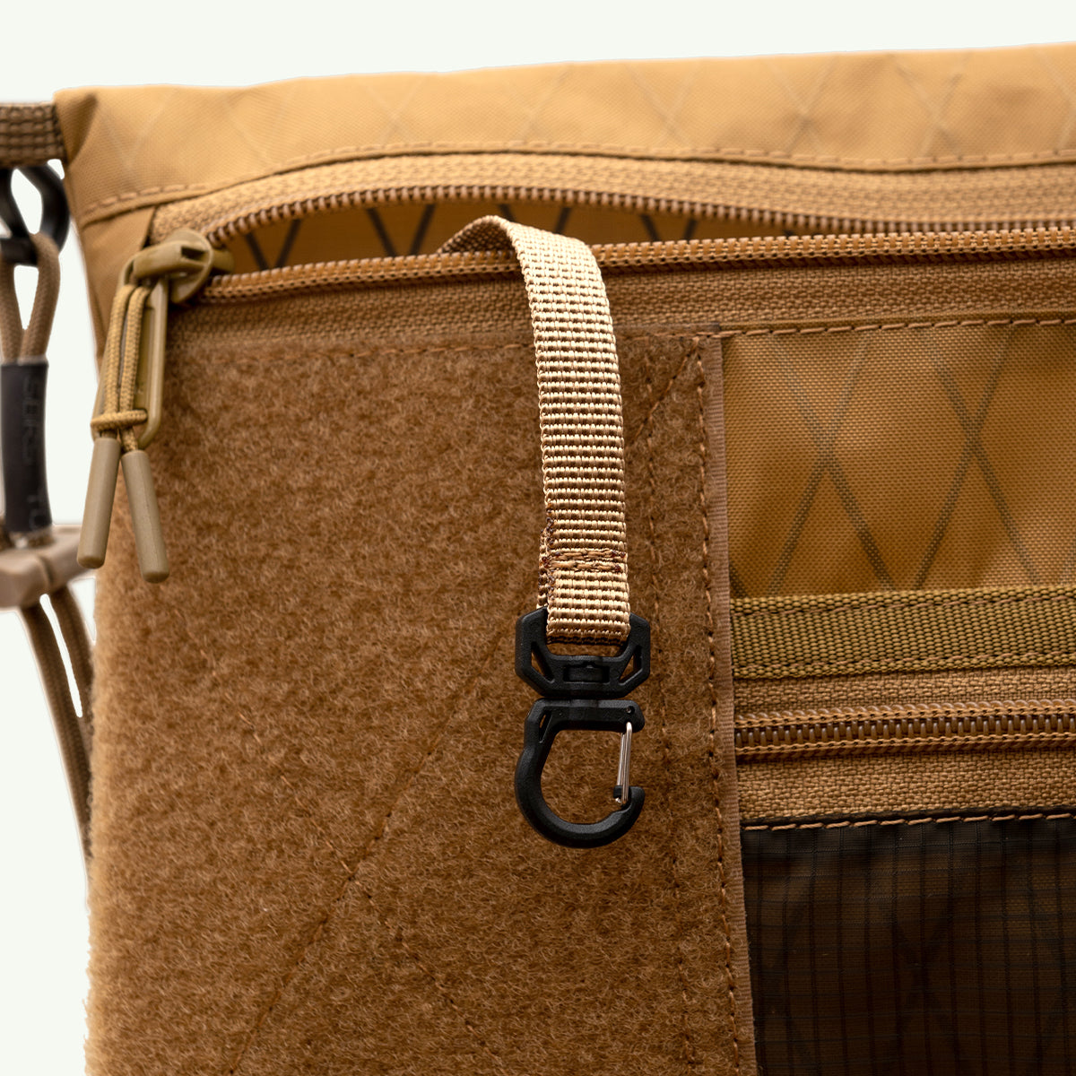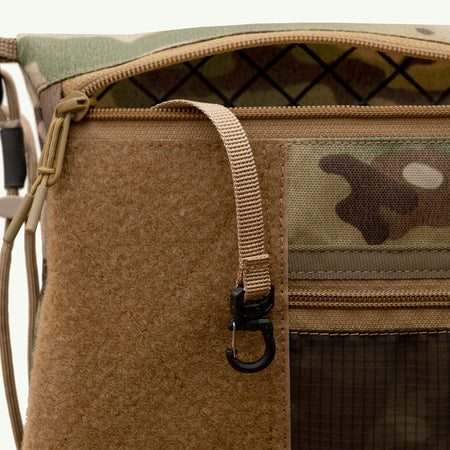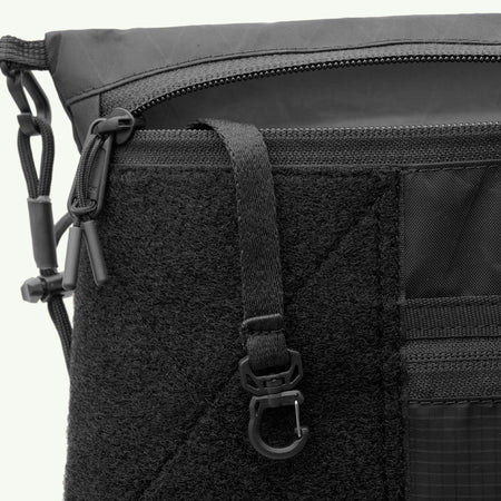 The bag has a main compartment with a sling and carabiner for keys, and a small translucent pocket with mesh, there is also a large velcro section on the front to attach the chevron of your favorite brand or division.