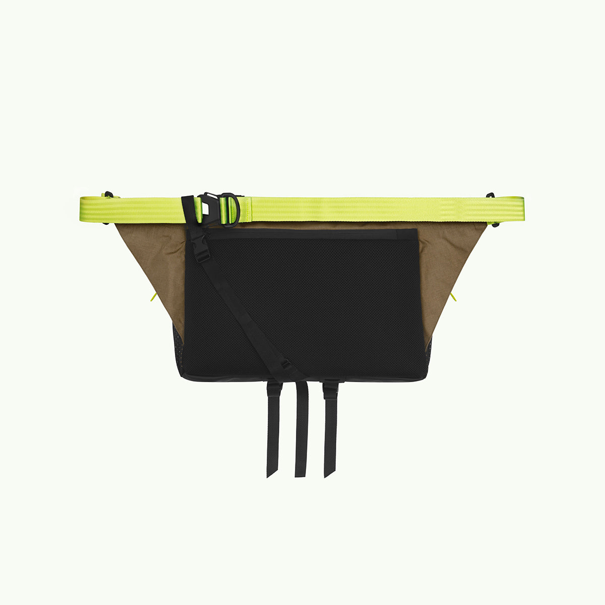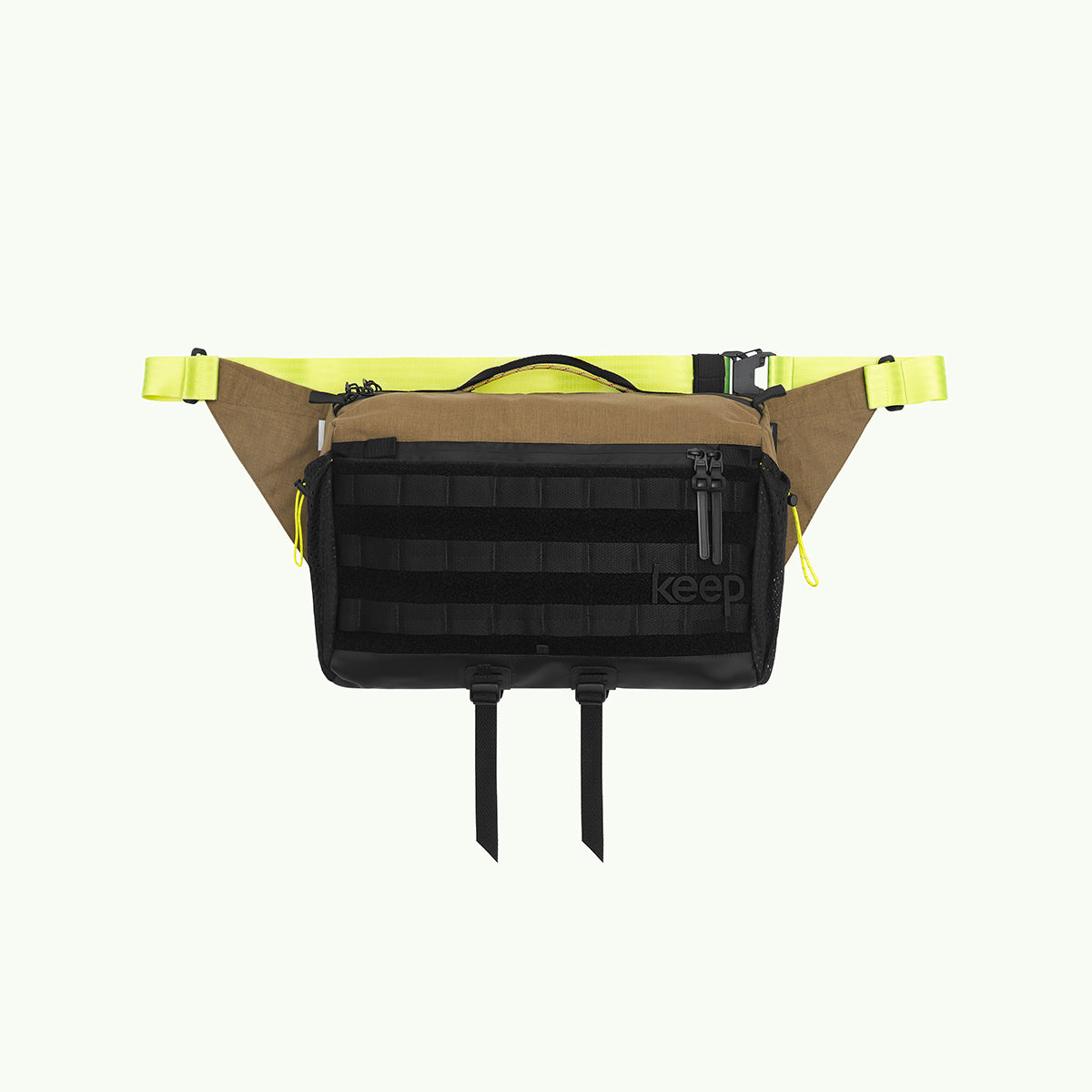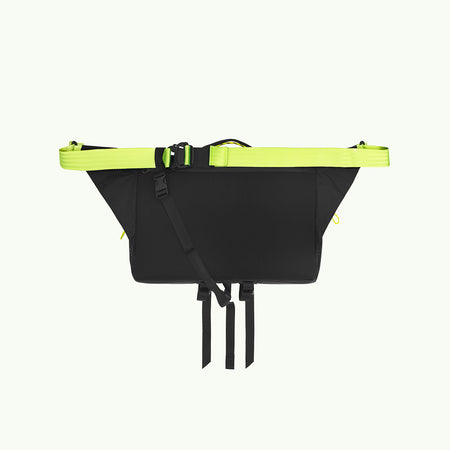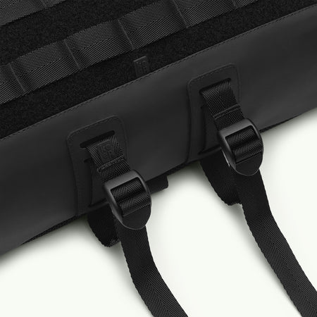 Arakawa Oki is a larger version of Arakawa's beloved slingpack, designed to safely carry a laptop. It features a molle system and a special compartment for a 14" MacBook or similar-sized laptop. Perfect for both biking and hiking.