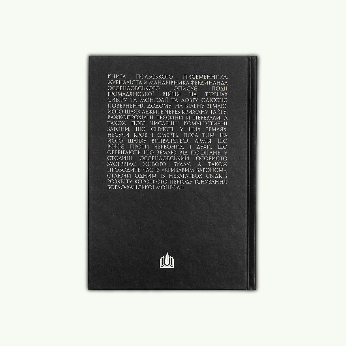 The book by the Polish writer, journalist and traveler Ferdinand Ossendowski describes the events of the Russian Civil War and the long odyssey of returning home to the free land. His path lies through the icy taiga, difficult-to-pass swamps and passes, as well as past numerous communist detachments that roam these lands, bringing blood and death. In addition, on his way there is an army fighting against the Reds, and spirits protecting this land from encroachments. In the capital, Ossendowski personally meets the Living Buddha, and also spends time with the "bloody baron", becoming one of the few witnesses to the flowering of the short period of existence of Bogdo Khan's Mongolia.