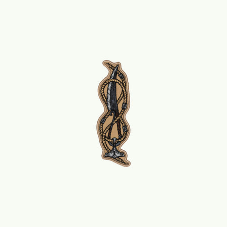 На патчі зображений кований скандинавський ніж IX ст. Зазвичай лезо робили із заліза або сталі, а руків’я виготовляли з натуральних матеріалів - дерева, кісток або рогів. Такі ножі використовували для виконання повсякденних завдань, роботи з деревом, а також як допоміжну зброю в бою. Навколо ножа - Мйольнір (Молот Тора) . Він слугував потужним амулетом, який мав захищати та надавати силу воїну.
