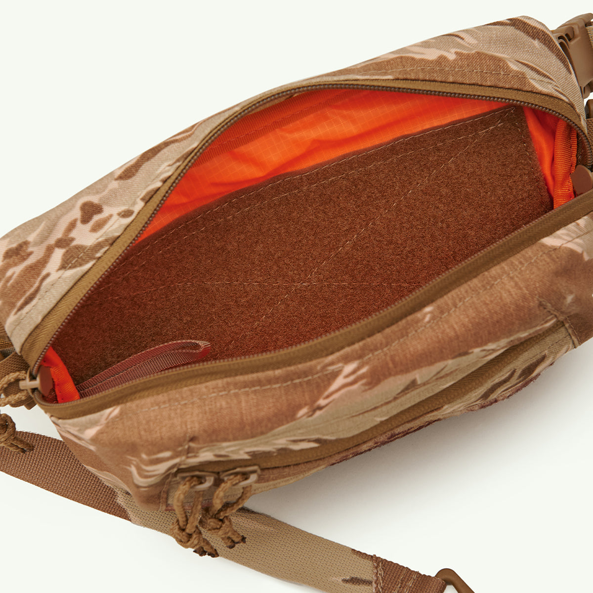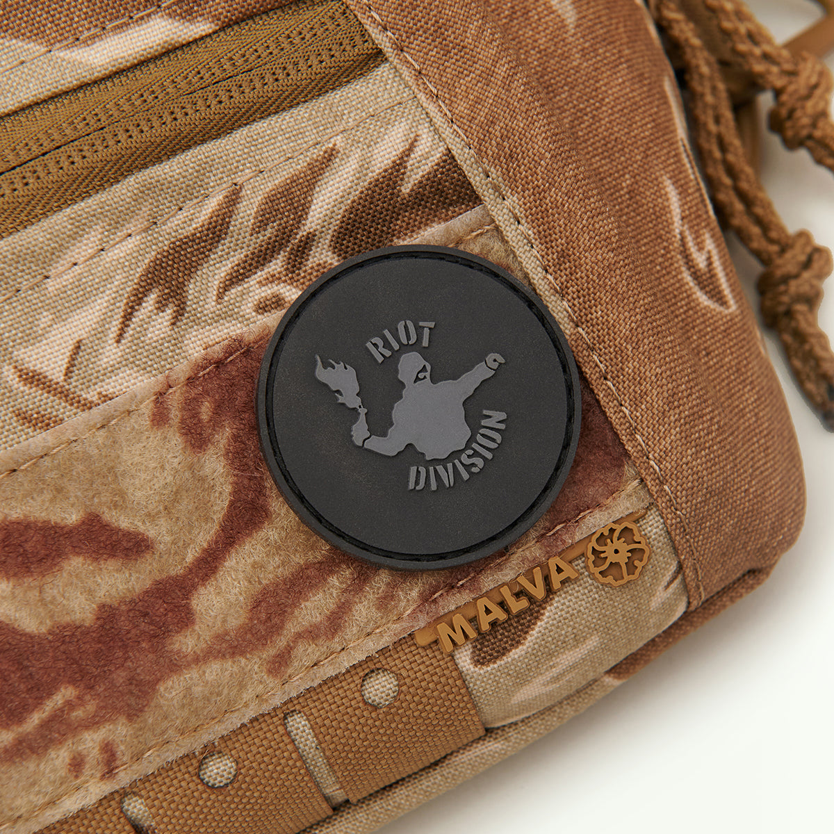 Матеріали: PU and DWR coated -NIR compliant -Desert Tiger Stripe Cordura 500 den MilSpec -Desert Tiger Stripe Velcro Loop -Desert Tiger Stripe Double Sided Printed Webbing -Squadron 500/1000 Denier CorduraFabric -Velcro - Due Emme (2M)