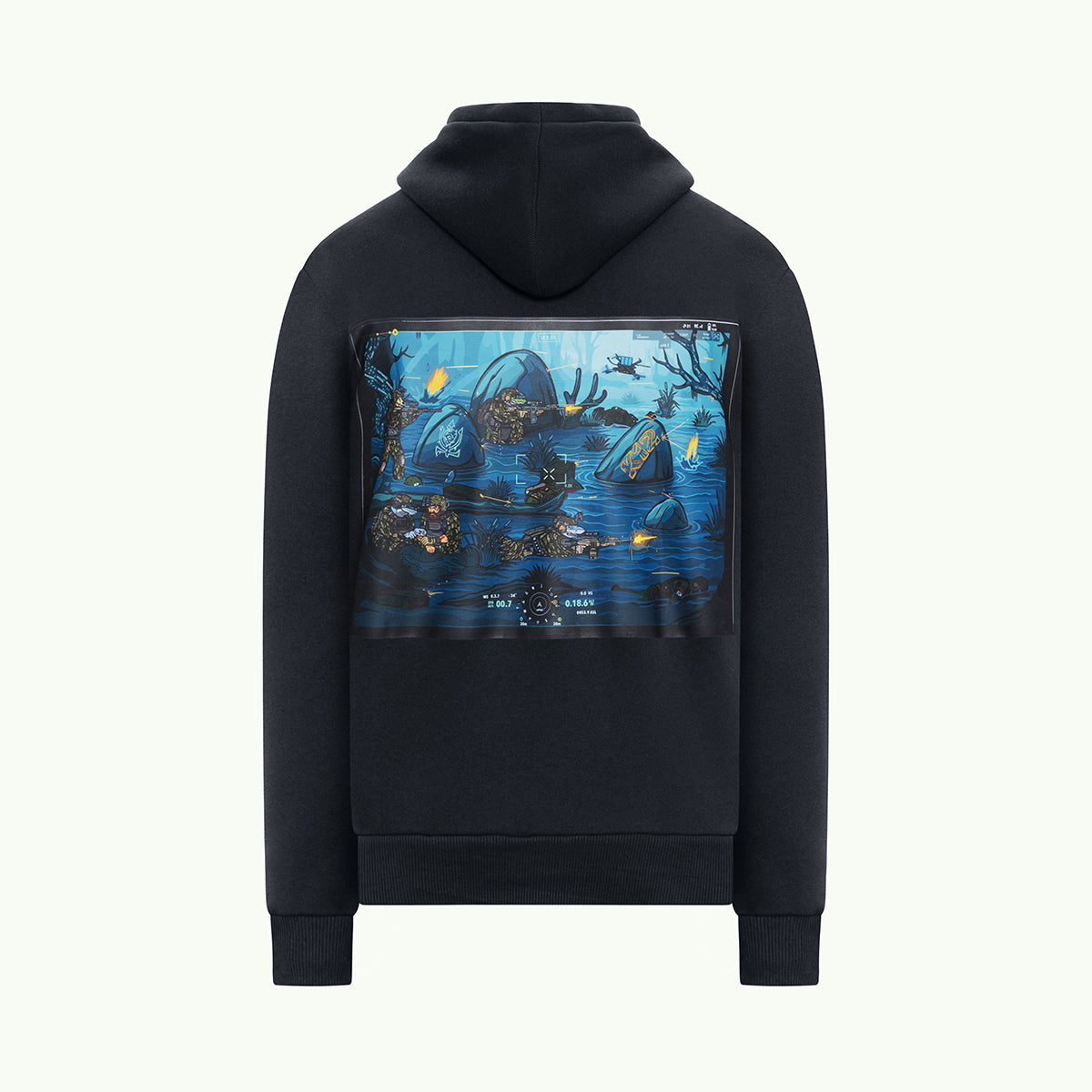 Худі з колаби Нептуна та «Контакт12» – це візуальний щоденник тієї роботи. Одяг, який нагадує: наша спільна війна триває, а помста за тих, хто ліг на болотах, ще не завершена.