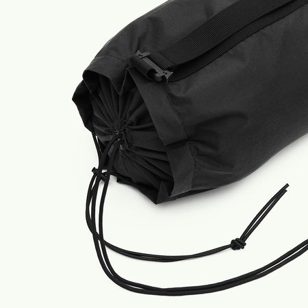 Чохол із переробленого та вологозахисного матеріалу. Силует та місткість чохла дозволяють зберігати та переносити килим для йоги та особисті речі, штатив для камери, тощо. При перенесенні килимків в сумці залишається місце, щоб покласти рушник або змінний одяг. Додаткові фіксатори надають змогу регулювати довжину ручки та ширину чохла залежно від вмісту.