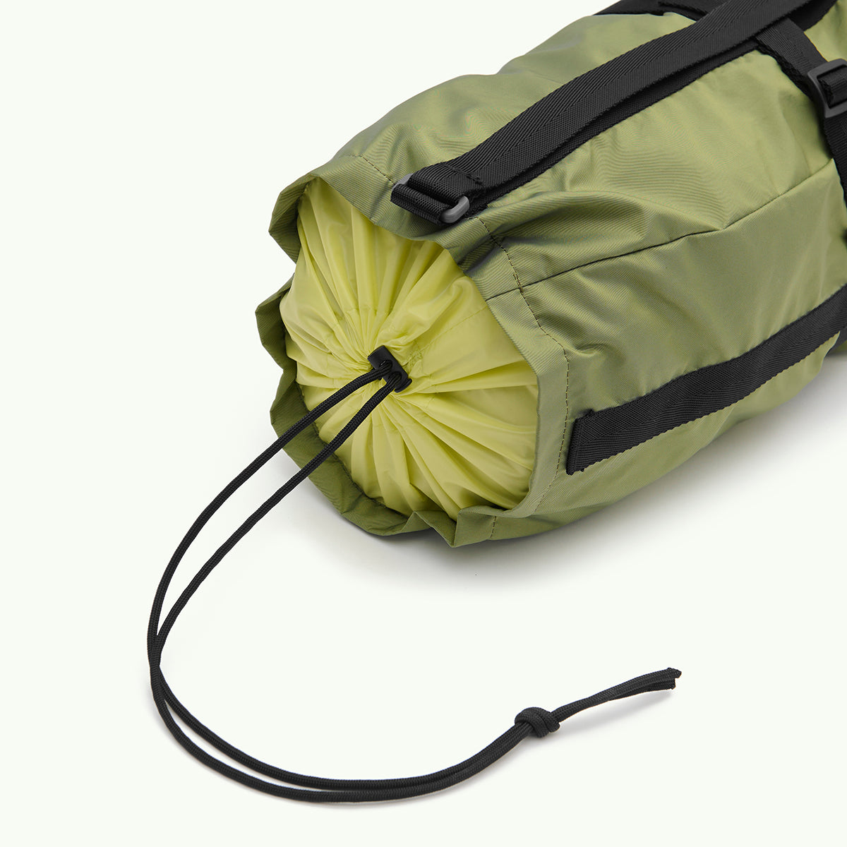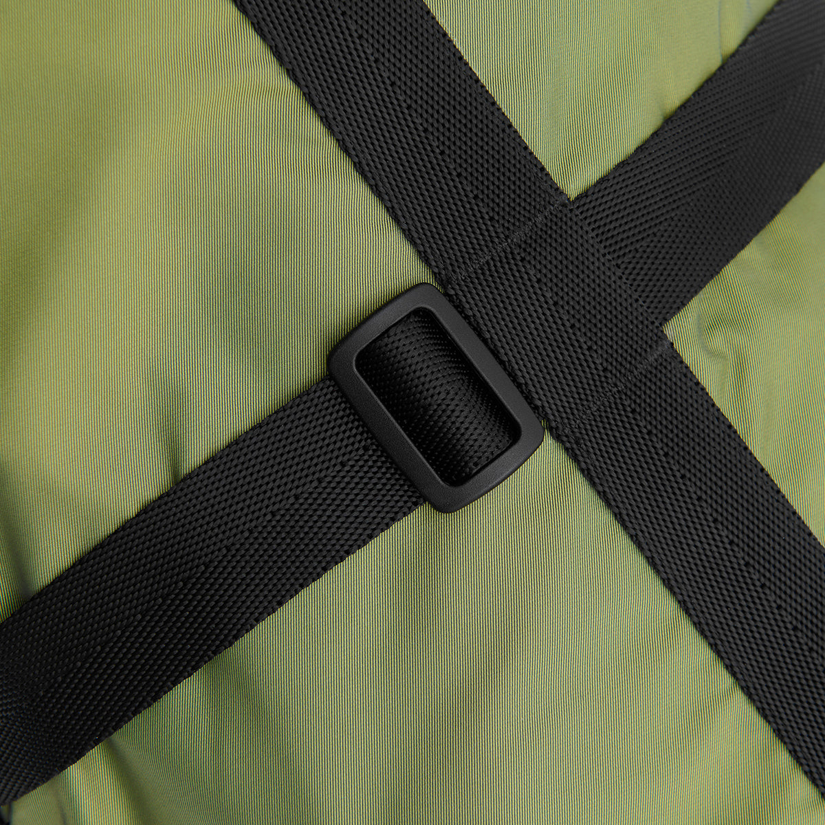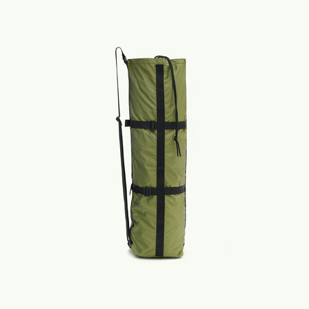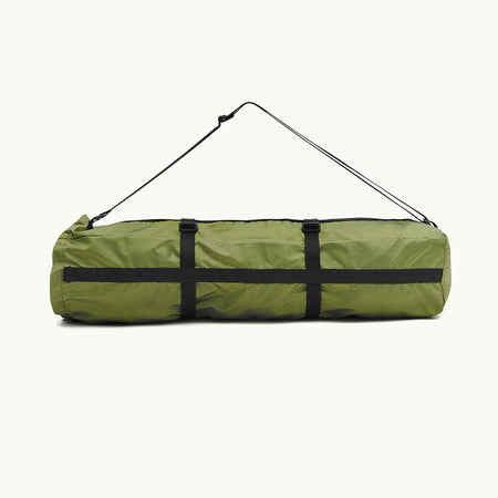 Чохол із переробленого та вологозахисного матеріалу. Силует та місткість чохла дозволяють зберігати та переносити килим для йоги та особисті речі, штатив для камери, тощо. При перенесенні килимків в сумці залишається місце, щоб покласти рушник або змінний одяг. Додаткові фіксатори надають змогу регулювати довжину ручки та ширину чохла залежно від вмісту.