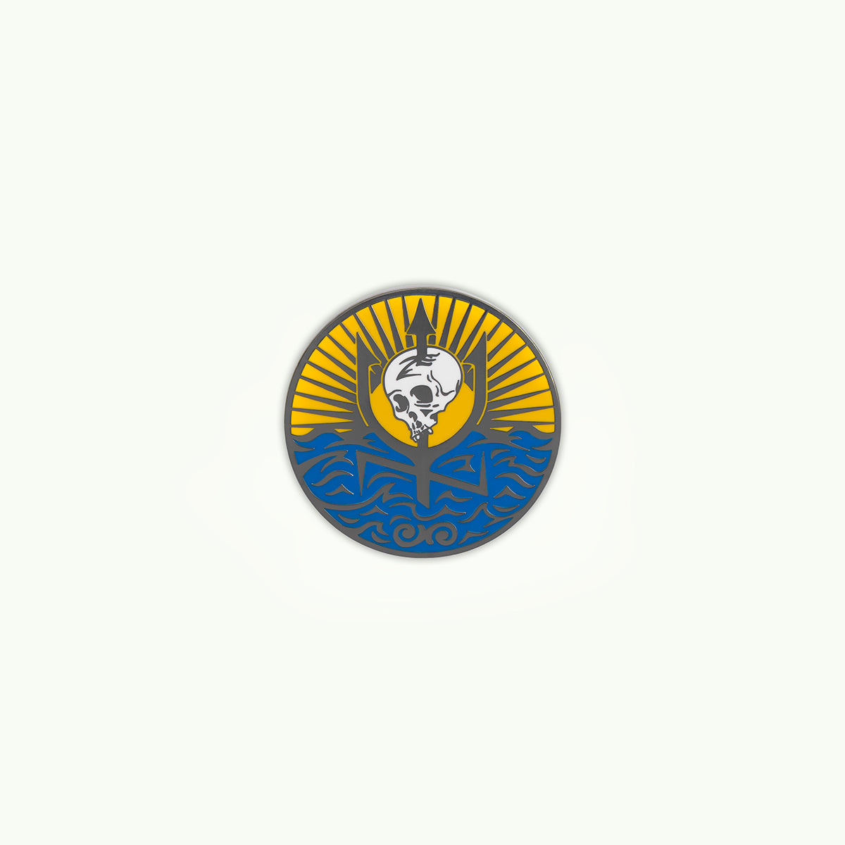 Тризуб над морем. Череп ворога — як печать відплати. Світло, що несе мудрість, як продовження честі. Відсилка до першого шеврона Азову —