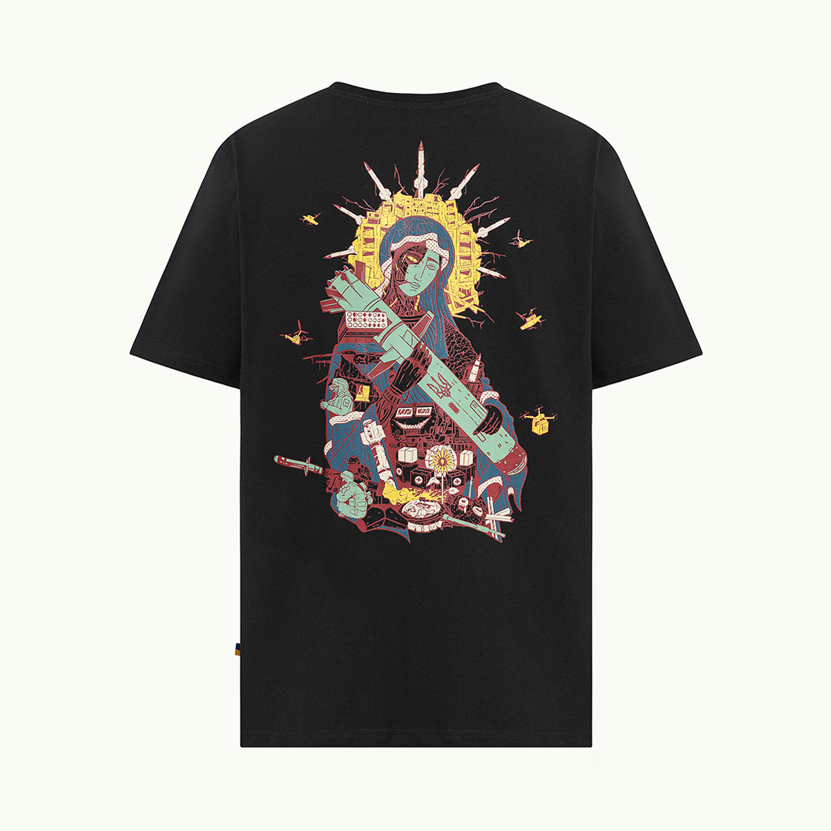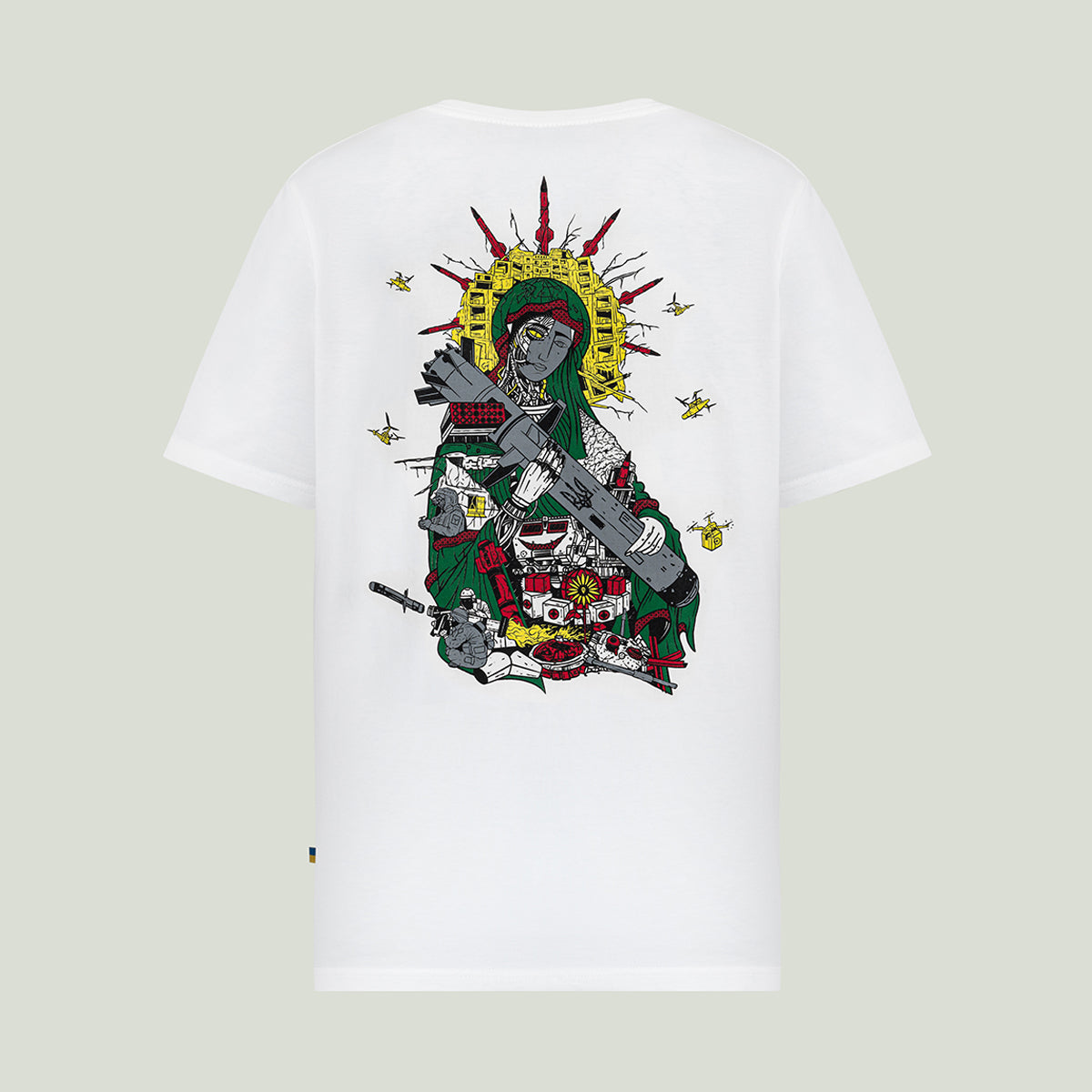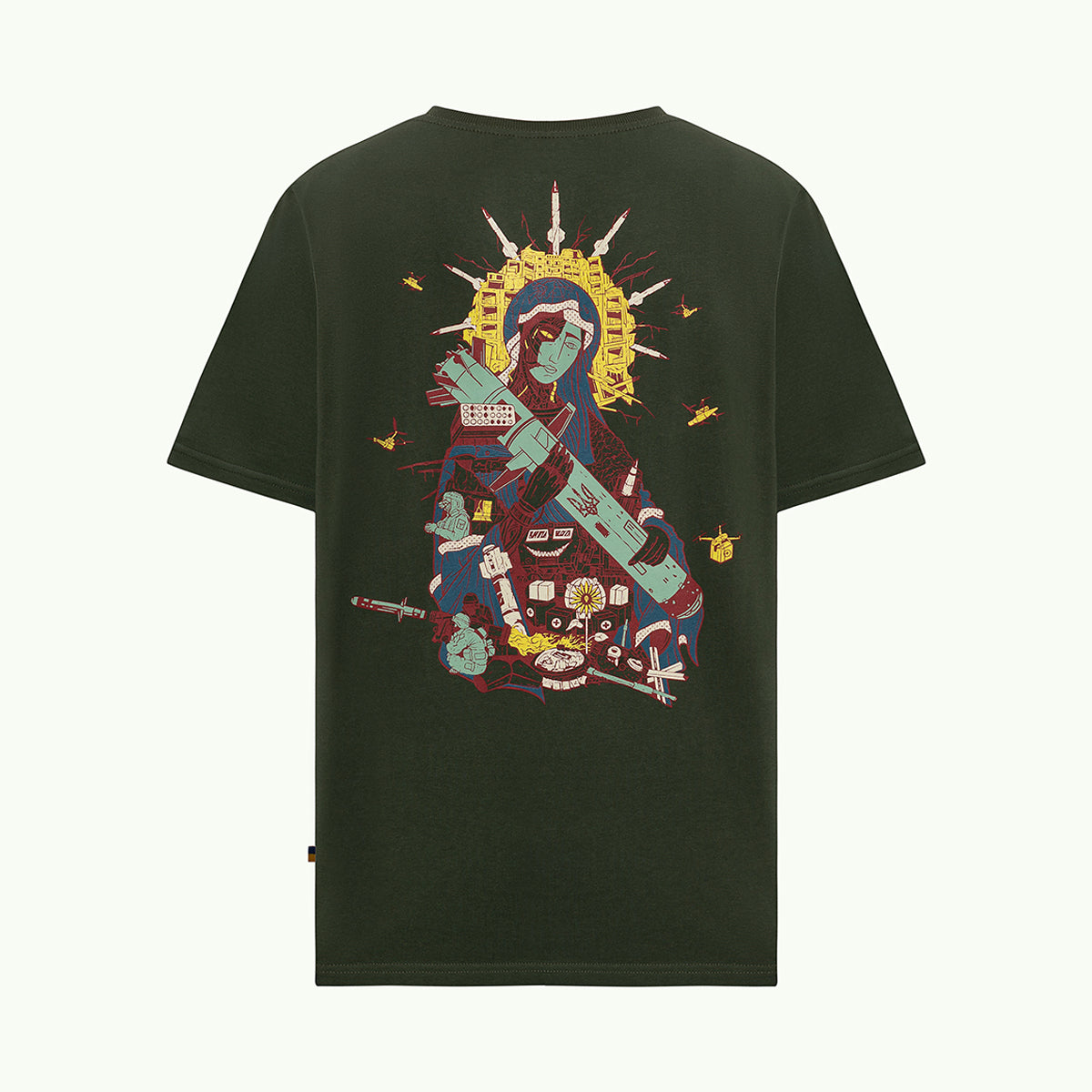 Створена талановитим українським художником та ілюстратором Олегом Семаком, ця версія класичного зображення Saint Javelin багата на символічні елементи, що втілюють суть того, за що виступає бренд. Навколо центральної фігури Saint Javelin зображені потужні ікони стійкості та захисту: солдати, військові медики та волонтери. Кожен елемент дизайну розповідає історію мужності, жертовності та непохитної підтримки боротьби України за свободу.